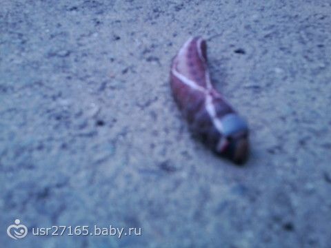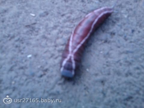 Вчера, гуляя по нашей аллейке мы увидели вот такую странную сикарашку:) Очень крупная. Я таких никогда в жизни не видела. См 7 в длину.На хвостике 2 шипика. Может кто-нибудь знает, что из неё вылупится? Весь интернет обрыскала… Ничего не нашла:(