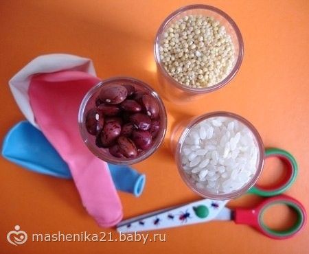 Очень интересные мячики из крупы и воздушных шариков. Всегда полезная вещь для детских конкурсов, детских игр и спортивных соревнований.