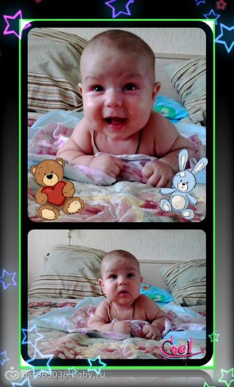 хорошенький у вас малыш. нам вчера было 4 мес и мы тоже еще на живот не переворачиваемся))))))