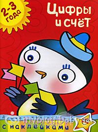Цифры — может, теоретически, сосчитать до 15, но когда считает часто пропускает цифры 2, 6, 11 :)) а так как у всех, ступеньки считаем, ложки в тарелке. Сейчас сосредоточились на счете до 3, на понятиях много-мало. По той же книжке Земцовой О., но только про счет.