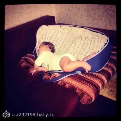 В кроватке, когда засыпает вертится как волчек. Там места достаточно. А в этой переноске иногда днем засыпает и начинает потом такое выдавать:)