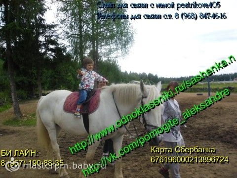 Итак наша первая поездка к лошадкам. Когда мы вышли из машины первое кого мы увидели были козы и так смешно мне стало знаете что Сашенька сказала. «ты меня только на коз не сажай они маленькие я буду на лошадке скакать.» За тем мы пошли в конюшню, Сашину лошадку как раз готовили я думала моя зайка испугается, но нет. Она конечно с опаской, но даже погладила нашу Снежинку. Первые несколько кругов Сашенька все время роняла голову, но она же у меня умница слушает врачей и тренеров. И уже вскоре Сашенька стала держать спину и голову и даже отпустила руки когда ей сказали. Я так Горда своей Бесстрашной Крошкой. Молодец Сашенька ЛЮБЛЮ ТЕБЯ. Следующее занятие в воскресенье.