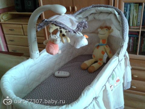 Колыбелька очень понравилась: красивая, устойчивая, приятные мелодии (громкость регулируется), есть ночничок и каруселька с игрушками, пульт управления, большая и вместительная — месяцев до 5-6. Зачем-то есть функция «вибро», но я сомневаюсь, что ребенку это может понравиться…