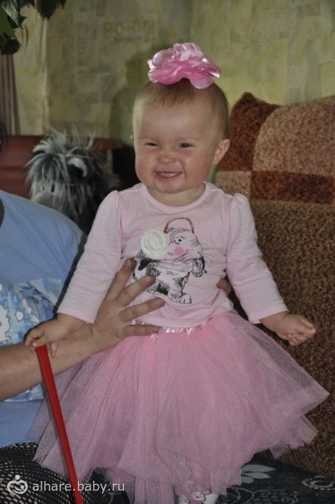 Любит заниматься на мяче. Сейчас вот проделываем курс массажа, как нам пояснила массажистка, она не ползет, потому что очень прямая спина.Она не умеет ее расслаблять. Правда в связи с болезнью массаж пришлось прервать и вот уже неделя как нет массажа. А почему заболела моя Зайка даже не знаю, одеваю ее тепло, но так чтобы не потела. Пьет все теплое.