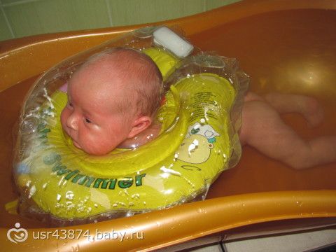 мы с кругом только в большой ванной купались))) там удобнее малышу))) минут 10-15 не больше)) потом круг снимайте и так купайте, мыльте или чего вы там делаете))) мы с мылом раз в 2 недели купаемся))) а так чистая водичка))