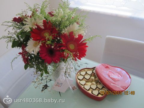 Девочки наш папа нас сегодня удивилпрямо с самого утра)))) Прислал мне букет цветов и коробку конфет