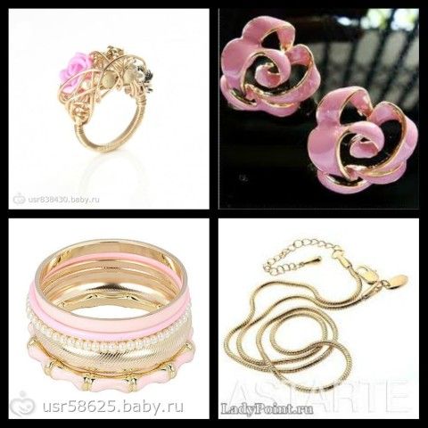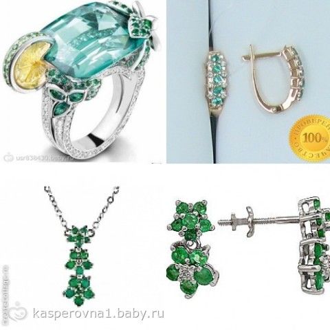 В набор могут входить: серёжки, ожерелья, подвески, браслеты, пирсинговые кольца (в пупок, в нос, в бровь..), заколки, в общем, всё, что касается бижутерии и подходит к колечку.