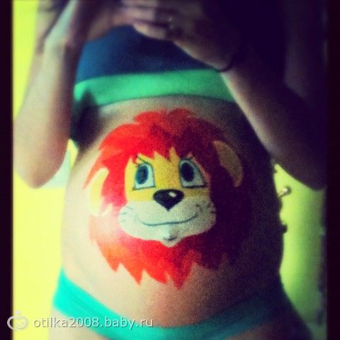 Девчули, сижу значит дома, одна, муж на работе — скучно… ну чем же заняться… порисовать решила..))) а где??? ну конечно на пузике))))) вот такой Лёвик получился)))) привет всем из пузика))))