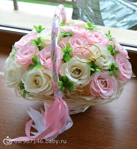 На этих выходных мы с мужем были на свадьбе у друзей и я сделала вот такую корзинку в цветовой гамме самой свадьбы. Как Вам?