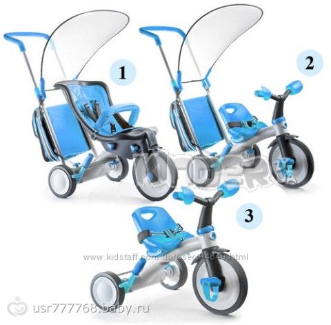 Девочки смотрела вчера этот велосипед. Решила написать отзыв. Плюсы: хороший дизайн, качественная пластмасса, удобная ручка которая имеет три уровня поднятия, есть тормоз как для мамы так и для малыша (ручка-тормоз) но врятли он малышу пригодиться, малыш пристегивается на коляске и на самом сидении велосипеда. Сам велосипед мне понравился ничего лишнего. Это все плюсы, которые я смогла увидеть для себя. Есть и минусы и они как мне кажется, очень важны. Само сидение-коляска не удобное. Для тех мам, у которых ребенок не любит лежать — это катастрофа. Сидение предназначено только для положение полулежа. Ну, в принципе, для ребенка, который начинает сидеть оно в самый раз. Чтобы ребенок просто сидел, в этой коляске, нужно было производителю сделать ремешок, который пристегивается с сидения коляски на бампер (ремешок который у малыша между ножками), для меня это очень важно. Нету подножки. У малыша, который 68 см. ножки уже будут свисать. Можно было и это предусмотреть производителю. Защита от солнца (типа козырек) не удобная, она вообще торчит для красы. Хотелось бы, что б этот козырек регулировался. Колеса тарахтят. Само колесо пластмассовое, а сверху на колесе я думала там резина, на резину только похожее и твердое, при езде тарахтит.