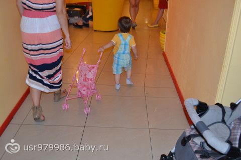Сходили в БебиБар — детское кафе… Все понравилось, Макс облюбовал девчачью розовую коляску и таскался с ней по всему помещению… Он у меня парень шустрый и бегал везде сам… хотя там нянечки за ними смотрят. Но я побаивалась его оставлять в игровом зале больше чем на 7-10 мин… не усидчивый он у меня))))