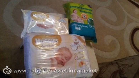мериесы брала пачку среднюю, не помню сколько штук. Пеленки брала одноразовые, но больше для себя.