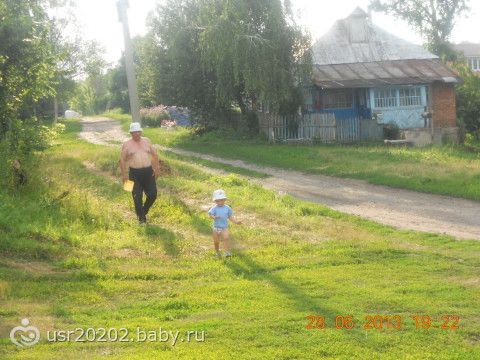 двое в панамках, прогулка с прадедом по селу