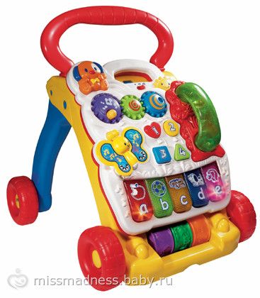 У нас машинка от Фишер Прайс, там и сортер, и песенки, и фраз много-ребенок не только ходил, но потом играл долго, катался на ней.Вобщем, очень довольны остались.