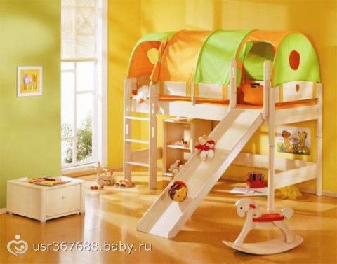 знакомые погодкам на заказ на подобие такой делали, только у верхней бортики выше, типа домика с окошком. но ребенок там спать отказался, спал с родителями до 4 летя всегда думала что этот нижнии ярус для вещей...))))