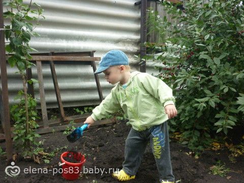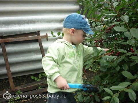 собирает вишню, и благополучно складывает в ведро с землей!!!