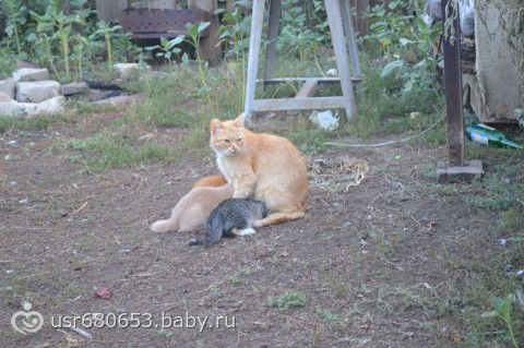 Дочка куколка! Коза корышная!!)) А у нас кот стал папой… Кошка котенка ему к нам в передбанник принесла… так он там и живет, выносить боимся, кошка кормить его туда приходит… вынесешь потеряет(