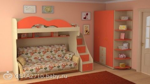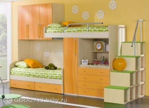 Спасибо!)У нас скорее всего детская для 2 девочек будет небольшой, поэтому хочу 2 яруску, потому что комната которая побольше-темная! Нравятся 2 яруски где много шкафчиков и подниматься на 2 ярус по тумбочкам, типа такого: