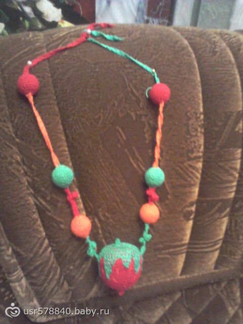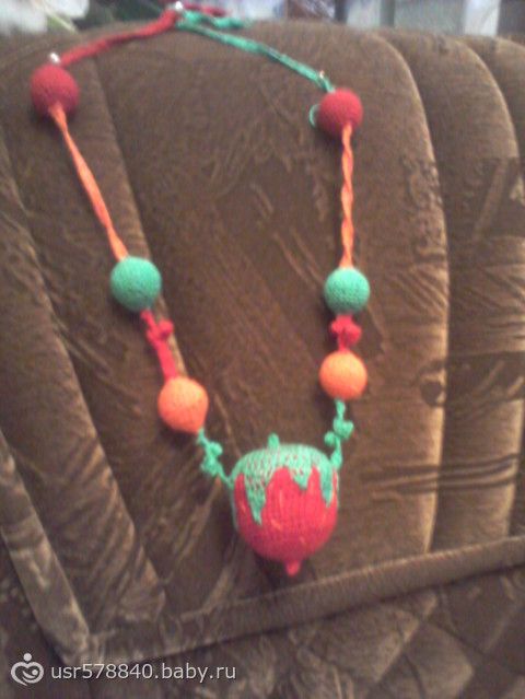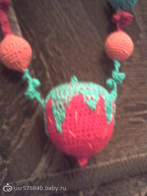 клубничка-погремушка. В пластиковую коробочку от бахил насыпала немного гречки и обвязала крючком нитками)) Доче ТАК нравится!!! почти не выпускает из рук. а мне так приятно!!! оценила доченька мамину работу![]()