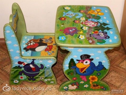 Девочки, всем спасибо)) В итоге по просьбе мамы купили столик) На картинке немного похож на наш, только там место где ребенок сидит у стола полукругом и цвет основной голубой и мордашки смешариков просто) а стул не простой, а стул-тумбочка)))
