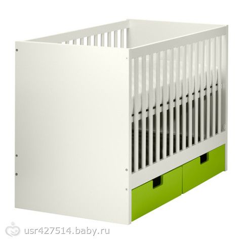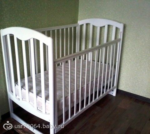 самая простая кровать на колесиках(качать дочу не планировали и не качали), небольшая часть бортика немного отпускается чтобы удобнее наклоняться к ребенку. + два положения дна, можно выше или ниже его переместить
