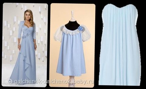 Я вам даю картинку длинного платья, а вы должны подобрать ещё 2 картинки максимально подходящего по ткани и фасону варианты перешитых платья.