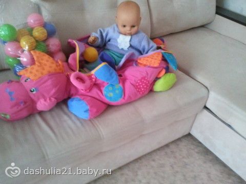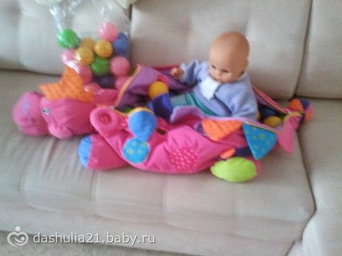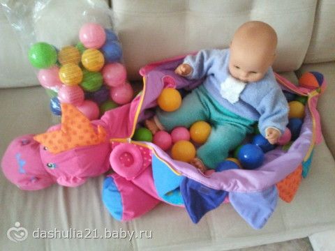 а нам на годик дарили, типа бассейна но не надувной, а тряпичный, такой динозаврик а внутри(спина у него на молнии) эти шары… так кристинка даже не играла… так и лежит...