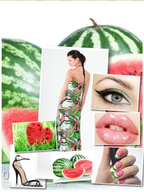 В коллаж может входить: одежда, обувь, аксессуары, ну и, конечно же, сам фрукт))) Сильно много всего тоже не надо всего, пусть проще, но со вкусом))))