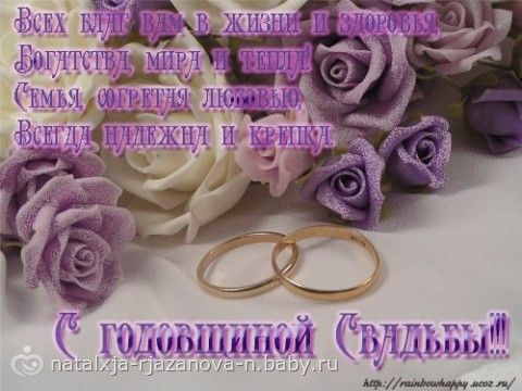 Поздравляю Наденька! Счастья Вам, огромной любви, и чтоб таких годовщин было как мининум 100!!