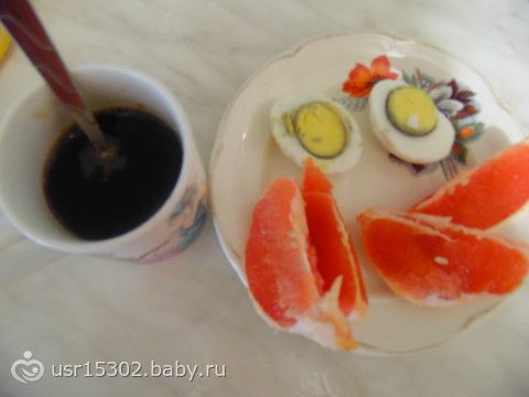 я не могу продержаться без сладостей, с чаем тырила хоть 1 конфетку. Неделю я тянула лямку на магги(но не соблюдала толком), мне было лень идти за мясом. Я съела на завтрак яйцо и кофе(правда с сахаром… а то яйцо назад полезет, не люблю вареные яйца) через часик взялась горемычная есть неЩастный «полгрейпфрут»))) ближе к 12 часам доела 2-е яйцо. Чай и ломтик хлеба черного со сметаной 15%