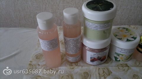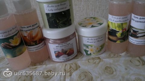 гели для душа, шампуни и маски для волос, все составы тоже написала