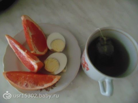 Сегодня у меня на завтрак как и всю прошлую неделю яйцо, пол грейпфрута с зеленым чаем