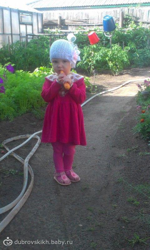 Приветики!!! Извиняюсь что не отвечала на ваши посты, мы с дочей гостили месяц в деревне.Гуляли целыми днями на улице, доче очень понравилось, ходила сама себе хозяйка, то помидорку сорвёт съест, то огурчик, но больше всего понравились малина и ирга, лопала без остановки.купалась в бассейне, с детками бегала играла, начала говорить моя мама, не надо спать, до этого предложениями вообще не говорила.Были у нас проблемы с весом, так доча за месяц набрала 800гр, моей радости нет предела.Вот несколько фоточек
