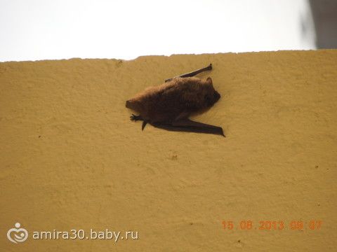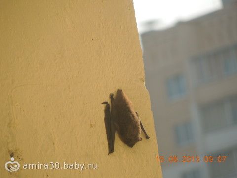 неее, она маленькая, я в начале ее за кусок грязи приняла, думаю что за ошметок висит на стене, а потом уж разлядела и за фотиком побежала, сейчас видили как мордочкой шевелила, заснять хотела, но не успела, она опять земерла неподвижно