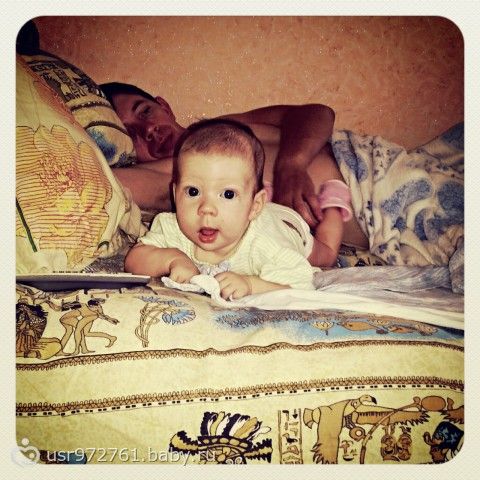 Сегодня пока мы с мужем обедали, а она лежала у меня на животе Софушка все тянулась вперед. Сесть наверное хотела, но мы понимаем, что еще ооочень рано!