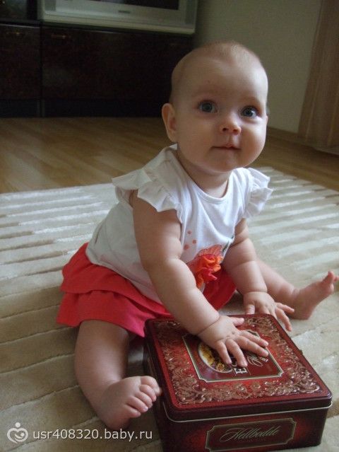 Нам уже 7 месяцев, к этому времени мы научились ползать на животике, пить из кружки, сидеть с ровной спинкой, наконец-то произносить слог «ма»)) узнавать наших собак на даче и улыбаться им, то же самое — с кошками. можем доводить до нервного срыва канарейку, стуча по клетке)) Очень радуемся бабушке и дедушке. Быстро усвоили, что не нужно жевать шторы и провода, трогать розетки и косяки дверей, есть цветы и книжки — и активно стараемся именно этим и заниматься)