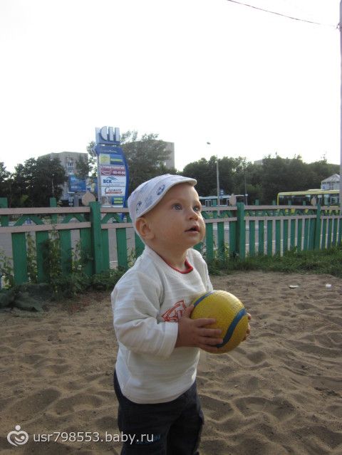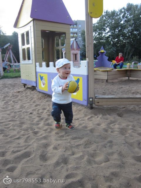 Научился бросаться песком ))) правда пока только себе в лицо и на голову )))) Когда пришли домой, то из носа песка вычистила примерно столько же сколько и в сандалях было ))))