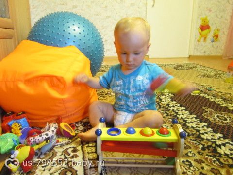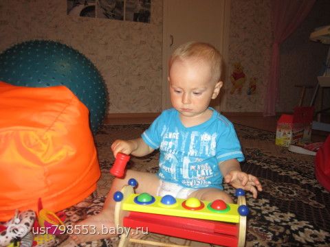 у нас есть «стучалка», подобная штука, там цилиндрики при ударе молоточком выскакиваю, Димке нравится лупасить, но вот вылетающие штуки я вынула, дабы не растерять!