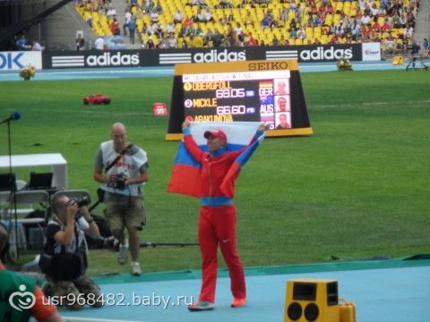 Привет, всем.Ходили с мужем на несколько мероприятий на Чемпионате Мира по Легкой атлетике с 10 августа — по 18 августа. Все очень понравилось.Болела за наших спортсменов очень сильно.Они молодцы, старались.Я, как бывший спринтер, очень переживала за наших девочек на эстафете 4*400м. И они нас порадовали золотом.Стадион просто ревел от восторга.С фотографировались с командой Ямайки.Очень дружелюбные люди.Конечно с Усейном Болтом не удалось, но не расстроились.