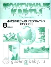 — Контурные карты с заданиями: Физическая география России: 8 класс. — 20шт. х 15 руб.