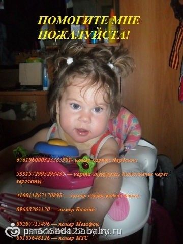 Пожалуйста, я Вас очень прошу, помогите кто чем может! ПОМОГИТЕ! Мне очень не легко было решиться просить, но выхода нет! Я сама готова жизнь отдать лишь бы это могло моей девочке...