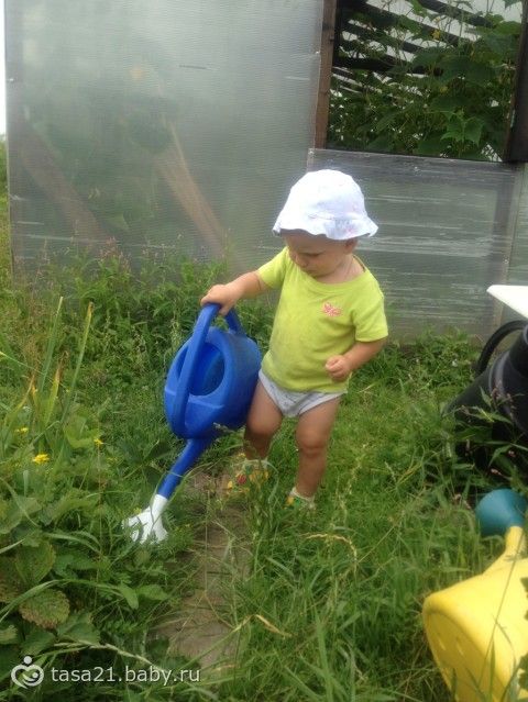 Почти каждый теплый денек у нас не обходился без поливания себя и всего вокруг. Из Сына получился отличный помощник на огороде: поливает