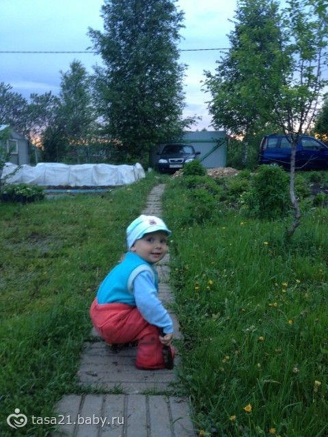 На даче у нас есть курочки, гусь и утка — Макс безумно любит гонять их по участку, кормить и особенно поить! На фото курочки доедают Максимкину кашу))