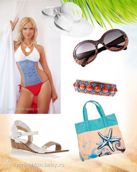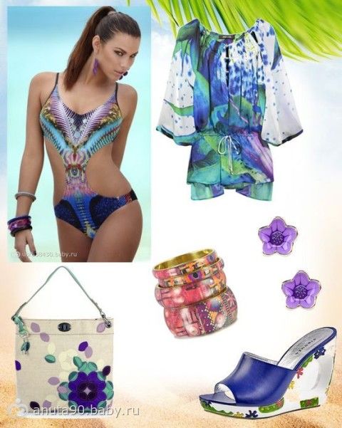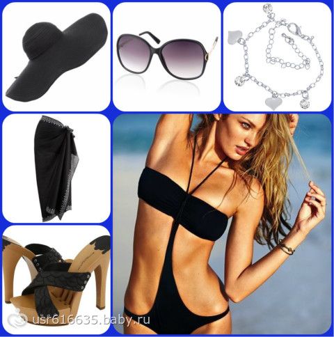 2. В коллаж может входить всё, что угодно: аксессуары, обувь, парео, макияж и т.д. Это как вы себе представляете образ к данному купальнику)