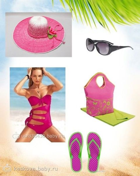 1. Я вам даю картинку купальника, а вам надо дополнить пляжный образ к нему.
