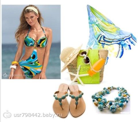 1. Я вам даю картинку купальника, а вам надо дополнить пляжный образ к нему.