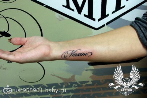 Девочки хочу сделать маленькую тату с именем малыша! У кого есть тату поделитесь не пожалели ли вы о сделанном? Это просто пример!