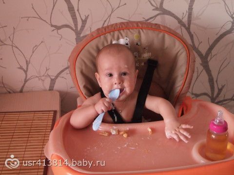 Витя доволен как танк. Я хоть позавтракала сегодня по человечески пока он на стульчике сидел )