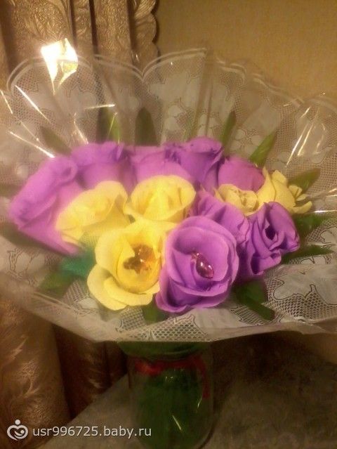 Вдохновилась я цветами с конфетками. Хочется что-то сотворить необыкновенное, но пока никак. Вот что у меня получилось в очередной раз