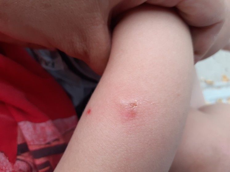 Похоже на разодраный укус комара. Настойкой календулы пару раз помазать и все быстро заживёт. Сыну только она помогает, а Фенистил и все остальные мази до одного места